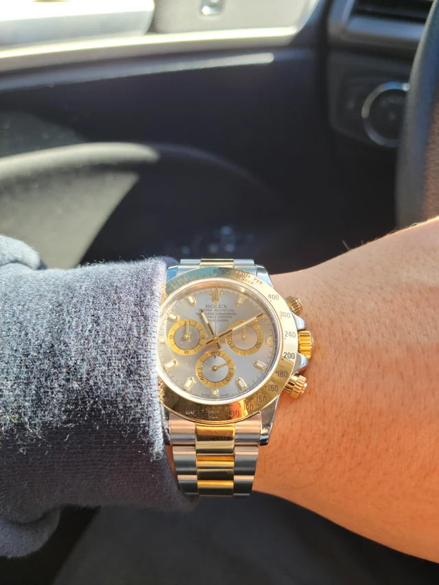 El Rolex Daytona es mucho más que lujo: es estatus, orgullo y reconocimiento. No necesitas palabras para demostrar quién eres; basta con un gesto, un movimiento, una mirada al reloj que lleva grabada tu historia. Porque cuando llevas un Rolex, llevas contigo una marca de éxito eterno.